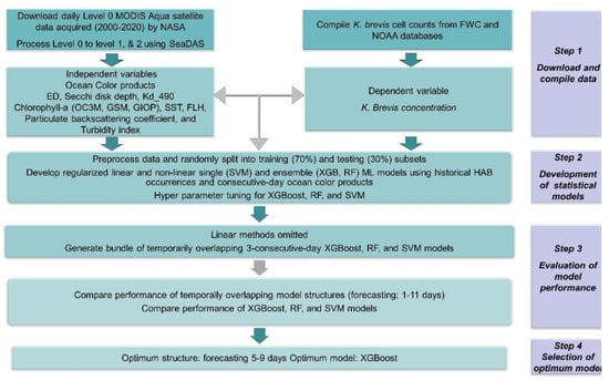 - Izadi, M.; Sultan, M.; Elkadiri, R.; Ghannadi, M.A.; Nikraftar, Z.; Namjoo, F. Remote sensing and statistical learning approach to harmful algal bloom forecasting using MODIS ocean colour parameters. In Proceedings of the AGU Fall Meeting Abstracts; 2020. Available online: https://ui.adsabs.harvard.edu/abs/2020AGUFMIN011..09I/abstract (accessed on 5 September 2021).