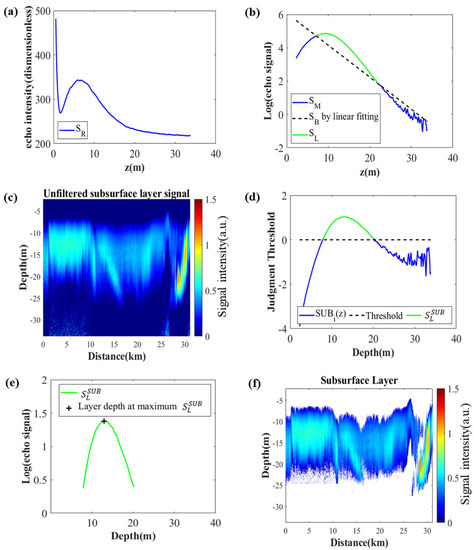 After that, the subsurface layer signal is obtained by subtracting the depth-dependent lidar signal SB from SM (Equation (4)).
