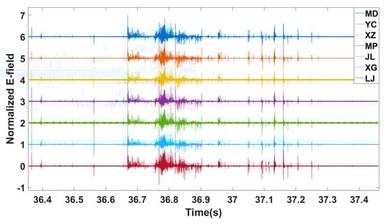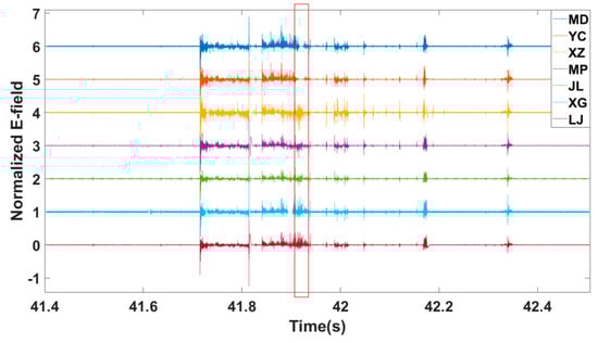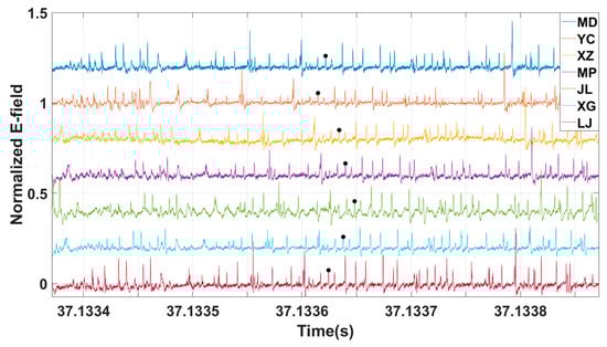 - The lightning electric field signal is decomposed by the EMD method and then partially synthesized, which removes the low-frequency components from the original signal and facilitates subsequent pulse seeking and pulse matching. Normalizing the decomposed and resynthesized signals can make the pulse amplitudes of the same radiation source at different stations more consistent.