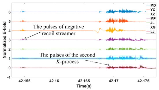 - According to the positioning result of a CG lightning flash, after the three negative recoil streamers were finished (approximately 1 ms, 12 ms, and 2 ms), the negative leader channel underwent a K-process. The negative recoil streamers were not connected to the K-processes. The three negative recoil streamers of the positive leader channel may have triggered the three K-processes of the horizontal negative leader channel of the lightning, respectively.
