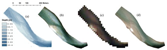 - Kasvi, E.; Salmela, J.; Lotsari, E.; Kumpula, T.; Lane, S.N. Comparison of remote sensing based approaches for mapping bathymetry of shallow, clear water rivers. Geomorphology 2019, 333, 180–197. [Google Scholar] [CrossRef]