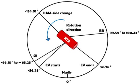 Schematic simplification of the RTA as it rotates and views the sectors (with their respective scan angles) used for the VIIRS TEB calibration. Not to scale.