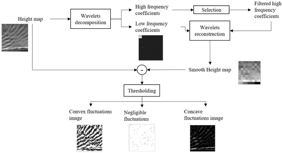The difference between the original image and the image of local trends will give an image of residuals. The residuals are chunks of the original 2D signal that separates it from a linear one. Figure 10 shows the wavelet analysis procedure.