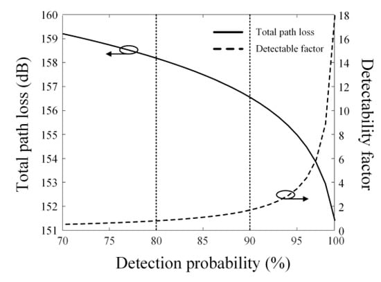 Calculated path loss threshold and detectability factor results according to detection probability.