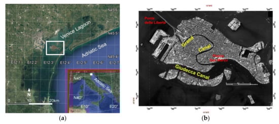 Study area: (a) study area location (white square); (b) IKONOS image of historical center of Venice.