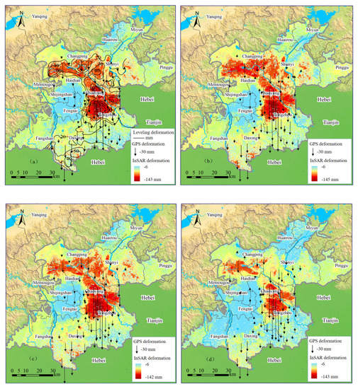 - Hu, B.; Wang, H.; Sun, Y.; Hou, J.; Liang, J. Long-term land subsidence monitoring of Beijing (China) using the small baseline subset (SBAS) technique. Remote Sens. 2014, 6, 3648–3661. [Google Scholar] [CrossRef]
