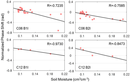 Previous studies have shown that phase shift is strongly correlated with soil moisture. In this study, a second-order function is used to describe the relationship as follows: