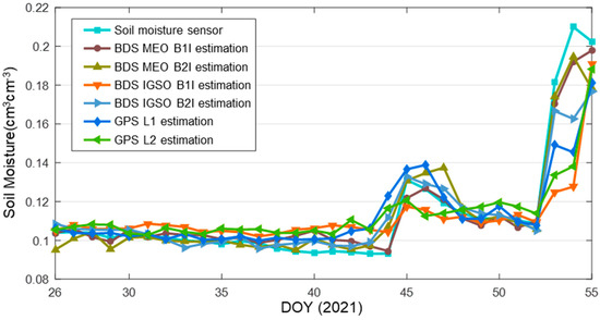 Multi-satellite soil moisture estimation results of BDS and GPS satellites.