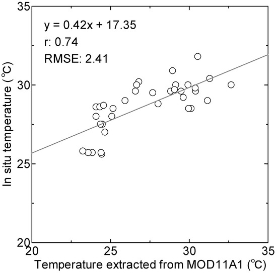 3.1. MODIS-Derived Water Temperature and In Situ Observations