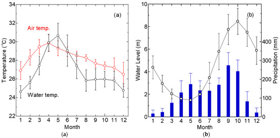 3.2. Seasonal Characteristics of Air Temperature, Precipitation, Water Level, and Water Temperature