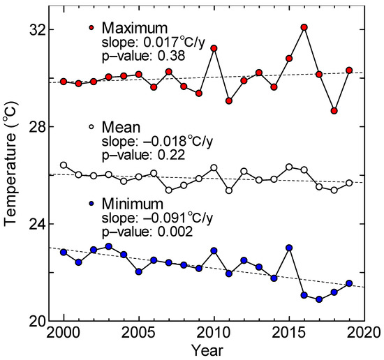 Characteristics of the Annual Maximum and Minimum Water Temperatures in Tonle Sap Lake, Cambodia from 2000 to 2019