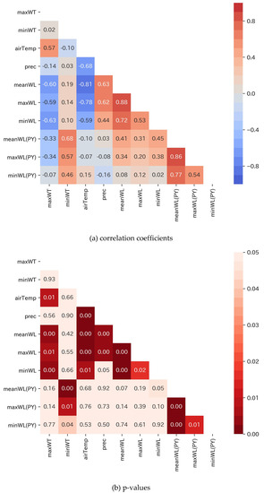 4.1. Changes in the Annual Maximum and Minimum Water Temperatures