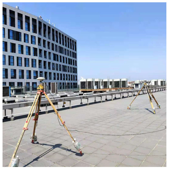 Prior to practical application, we utilized a static experiment to verify the feasibility of the ambiguity substitution approach and SD observables with a common clock. Two Zephyr-Model 2 antennas were placed on the rooftop of the Estuary and Coast building at East China Normal University. Static GNSS observations were collected using a Trimble BD982 dual-antenna GNSS receiver with a baseline length of approximately 6.44 m. The static observations spanned from 3–8 July 2021 (DOY 184–189) and had a sampling rate of 1 Hz. Figure 1 shows a photograph of the antennas used in the experiment.