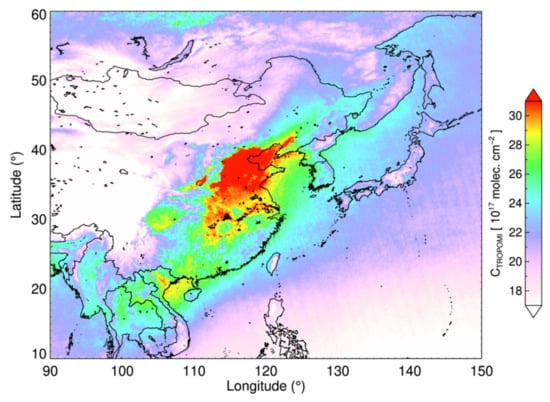 - Heald, C.; Jacob, D.; Fiore, A.; Emmons, L.; Gille, J.; Deeter, M.; Warner, J.; Edwards, D.; Crawford, J.; Hamlin, A.; et al. Asian outflow and trans-Pacific transport of carbon monoxide and ozone pollution: An integrated satellite, aircraft, and model perspective. J. Geophys. Res. Atmos. 2003, 108, 4804. [Google Scholar] [CrossRef]
