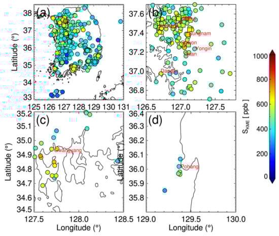 - National Institute of Environmental Research (NIER). Annual Report of Air Quality in Korea; Ministry of the Environment: Sejongsi, Korea, 2019.