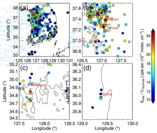 - Jeong, U.; Hong, H. Assessment of tropospheric concentrations of NO2 from the TROPOMI/Sentinel-5 Precursor for the estimation of long-term exposure to surface NO2 over South Korea. Remote Sens. 2021, 13, 1877. [Google Scholar] [CrossRef]