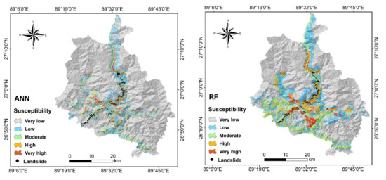 ANN is a learning algorithm composed of neurons, organised in layers that can be used both for classification and regression tasks [47]. The training examples are continually offered to the algorithm, whereas the weights are updated to achieve the favorite objective value. As a benefit in landslide studies, it does not need a straightforward practice to evaluate their favorite objectives [48].