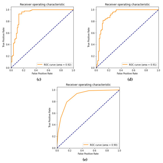 The area under ROC is known as AUROC, a quantitative measure summarizing model performance. ROC curves help to recognize the balance between true-positive and false-positive rates. A perfect model has 1.0 AUROC, and 0.5 AUROC indicates random models. The closer the AUROC to 1.0, the higher the model performance.
