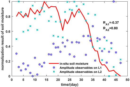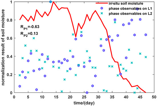 Then, we analyzed the correlation between the phase observable and in situ soil moisture as shown in Figure 12.