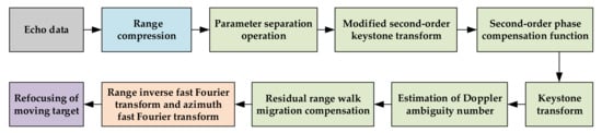 - Kirkland, D. Imaging moving targets using the second-order keystone transform. IET Radar Sonar Navig. 2011, 5, 902–910. [Google Scholar] [CrossRef]