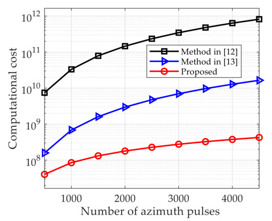Curves of computational cost vs. the azimuth pulse number for three methods.