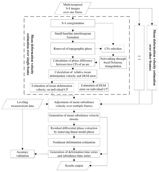 The remainder of the paper is structured as follows. The study area and S-1 images are introduced in Section 2. Processing methodology is also given in Section 2 with emphasis on the co-registration scheme consisting of three course-to-fine registration steps and TS-InSAR retrieval over a large region. Ground subsidence results are presented in Section 3, together with the accuracy evaluation. In Section 4, the spatial-temporal characteristics and causes of subsidence over five major subsiding zones are analyzed in detail by synergetic utilization of InSAR-derived results, historical optical images and field-work findings. Finally, conclusions are drawn in Section 5.