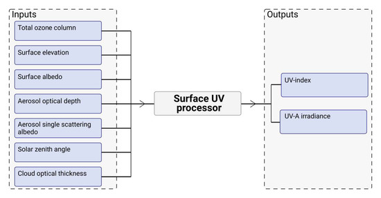 Figure 10. Schematic figure of the inputs and outputs of the surface UV processor.