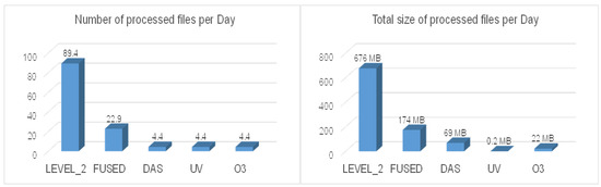 Figure 13. The number of files processed per day (left) and the size processed per day (right).