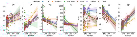 3.1. Comparison Between RG Station Data and Satellite Precipitation Datasets