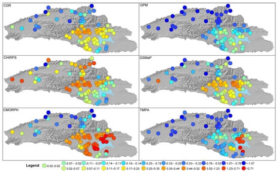3.2. Annual and Interannual Performance of Satellite Precipitation Datasets