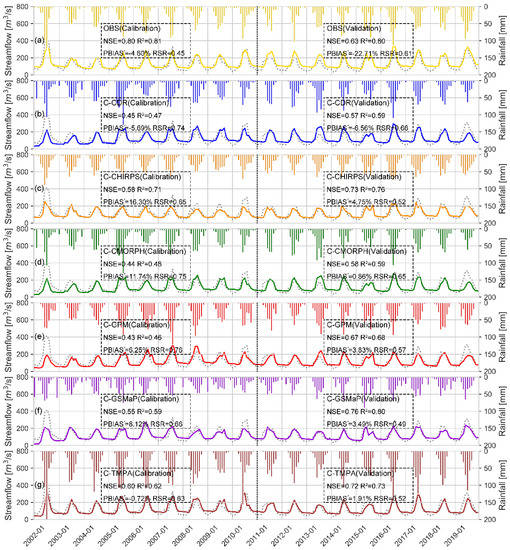 3.3.2. Streamflow Simulation of Corrected Satellite Datasets