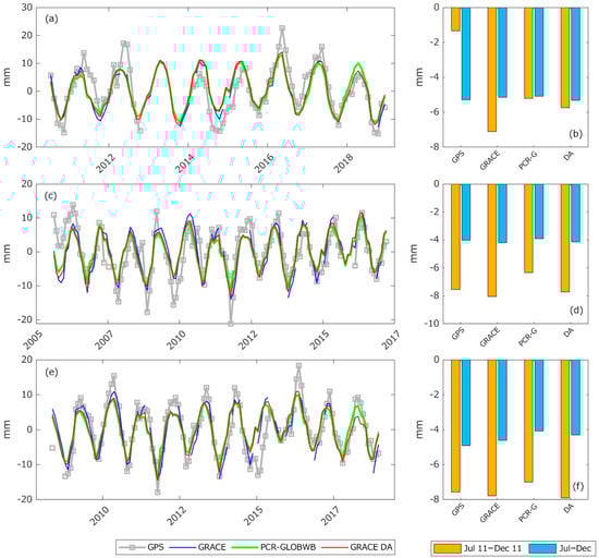 - Argus, D.F.; Fu, Y.; Landerer, F.W. Seasonal variation in total water storage in California inferred from GPS observations of vertical land motion. Geophys. Res. Lett. 2014, 41, 1971–1980. [Google Scholar] [CrossRef]