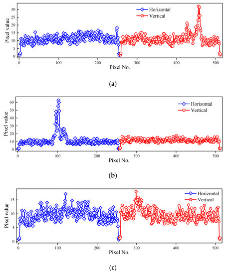 The integral projection (IP) was developed on basis of the projection distribution characteristics of the image in some directions [44]. As a statistical approach, the IP essentially consists of horizontal projection and vertical projection, the expressions of which are given as follows: