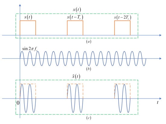 where denotes the waveform embedded in each pulse duration of , and satisfies for any . As a modulation signal, is modulated by multiplication with a transmitted carrier signal in a noncoherent or coherent way. Figure 1 illustrates the difference of these signals visually.