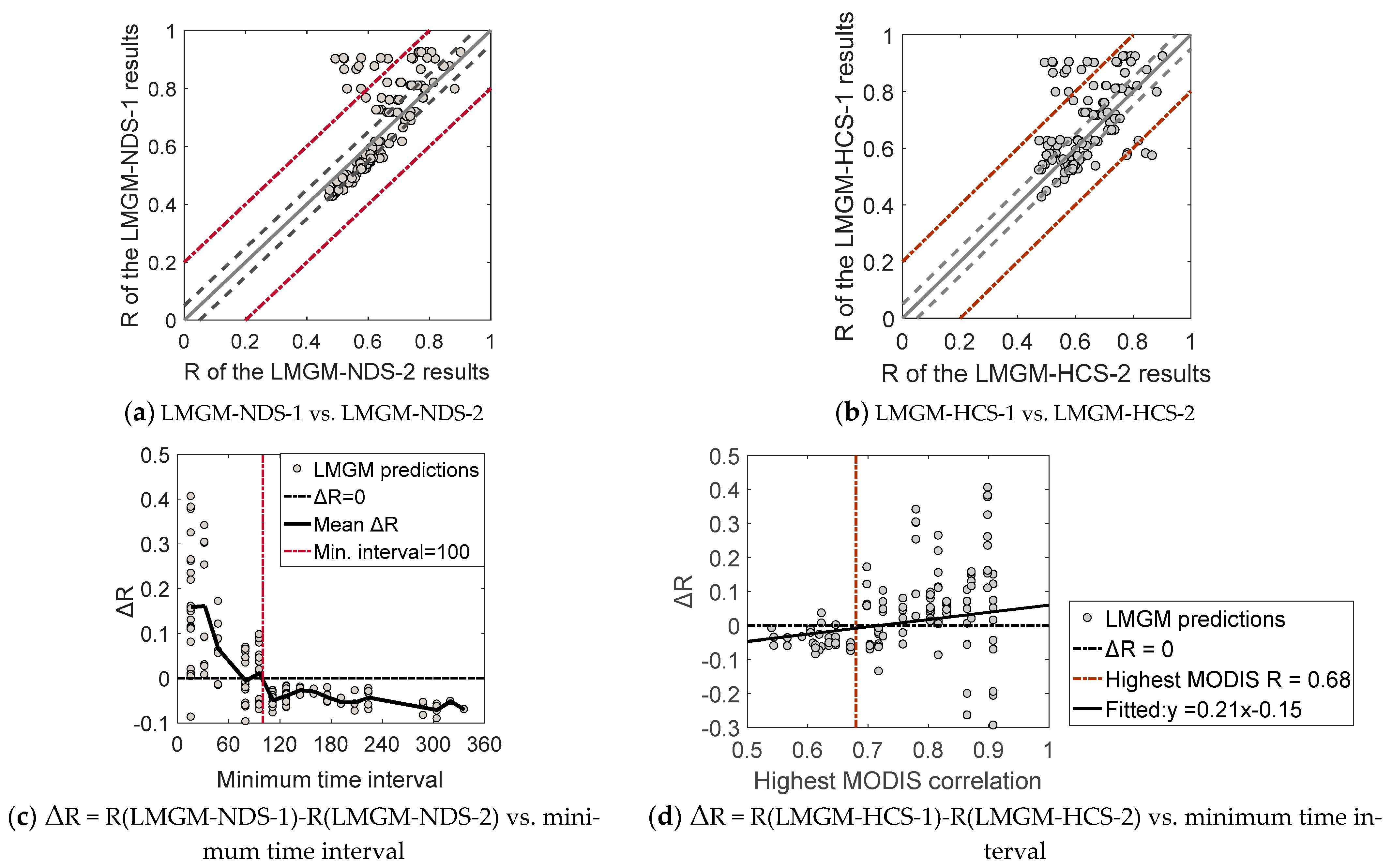 3.1.2. MODIS Correlation vs. Fusion Accuracy