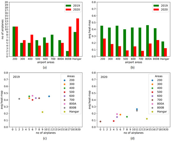- unchanged operations (yellow): spots presenting high average activity and high number of airplanes; and