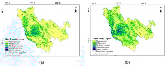 Comparison of freeze-thawing erosion (Chindu County). (a) The result of Bulletin of Soil and Water Conservation. (b) The research result of this paper.