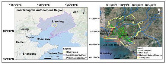 Liao River delta (121°25′~122°31′E, 40°39′~41°27′N) belongs to the south of Liaoning Province, northeastern China. It is the estuary of the Liao River, Shuangtaizi River, Daling, and Xiaoling River. The administrative area of Panjin city was selected as the study area to integrate the socio-economic data, which covers the entire Liao River delta. Paddy fields, reed wetlands, and water areas are the main components of the region. The survey records revealed that there are many species migratory birds inhabiting and breeding in study area, 53% of the total species in China, mainly including red-crowned crane (Grus japonensis), and black-headed gull (Chroicocephalus saundersi) [42]. Agricultural activities are dominated by cultivation and aquaculture, industrial activities are dominated by oil exploitation, and built-up areas are dominated by roads or housing that have seriously damaged wetlands [42]. It has been recognized as in need of conservation with the designation of the Shuangtaizihekou (Liao River kou) national reserve in 1986, and the wetlands being listed as a Ramsar site since 2004 [41]. This reserve has been designated to strengthen the protection and management of wetland ecosystems.