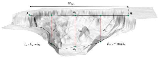 In recent years, different remote sensing methods have emerged as cost and time-effective indirect techniques for accurate data collection [20,27,38,39,40,41] that allow for the creation of very-high-resolution (VHR) digital surface models (DSMs). The use of Structure-from-Motion (SfM) algorithms and unmanned aerial vehicles (UAV) photogrammetry has been recently particularly popular for the creation of VHR DSMs and as such it has wide application in various geomorphological researches [42,43,44,45,46,47,48,49,50,51,52,53,54,55,56,57,58,59,60,61,62,63]. In particular, the application of UAV photogrammetry and SfM algorithms have found wide application in soil erosion related research [51,52,53,54,55,56,57,58,59,60,64]. VHR DSMs provide the perfect basis for a pixel-orientated analysis of morphological changes and quantification of spatio-temporal changes at a sub-decimeter scale [40,65]. Although interval VHR DSMs are mostly used for detection and quantification of areal and/or volumetric spatio-temporal changes, lately the interest in the use of DSMs for accurate measurement and evaluation of GCs characteristics has been growing [29,66,67,68,69,70]. From a scientific perspective, research of spatio-temporal changes in GCs is still relevant and important, as cross-sections reveal valuable geomorphological information that cannot be observed from volumetric measurements derived from continuous surfaces [24,68]. While volumetric spatio-temporal changes indicate overall erosion or accumulation of soil material, measurement of spatio-temporal changes within GCs can provide insight into: cross-sectional metrics (e.g., cross-section width (W); gully top width (TW); bottom width (BW); gully depth (D); gully cross-sectional area (CSA); width–depth ratio (W/D ration); shape factor (SF)) [24,70,71], erosion rate [24], gully evolutionary stage [72] (72 in 68), soil resistance [73,74] (73,74 in 68), dominance of certain types of erosive processes [75,76] (75,76 in 68), etc. A detailed description of more than 20 different geometric and morphological parameters that can be extracted for every measured GCs is given in [24].