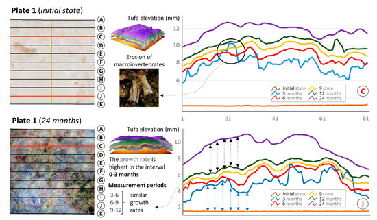 - Marić, I.; Šiljeg, A.; Cukrov, N.; Roland, V.; Domazetović, F. How fast does tufa grow? Very high-resolution measurement of the tufa growth rate on artificial substrates by the development of a contactless image-based modelling device. Earth Surf. Process. Landf. 2020, 45, 2331–2349. [Google Scholar] [CrossRef]