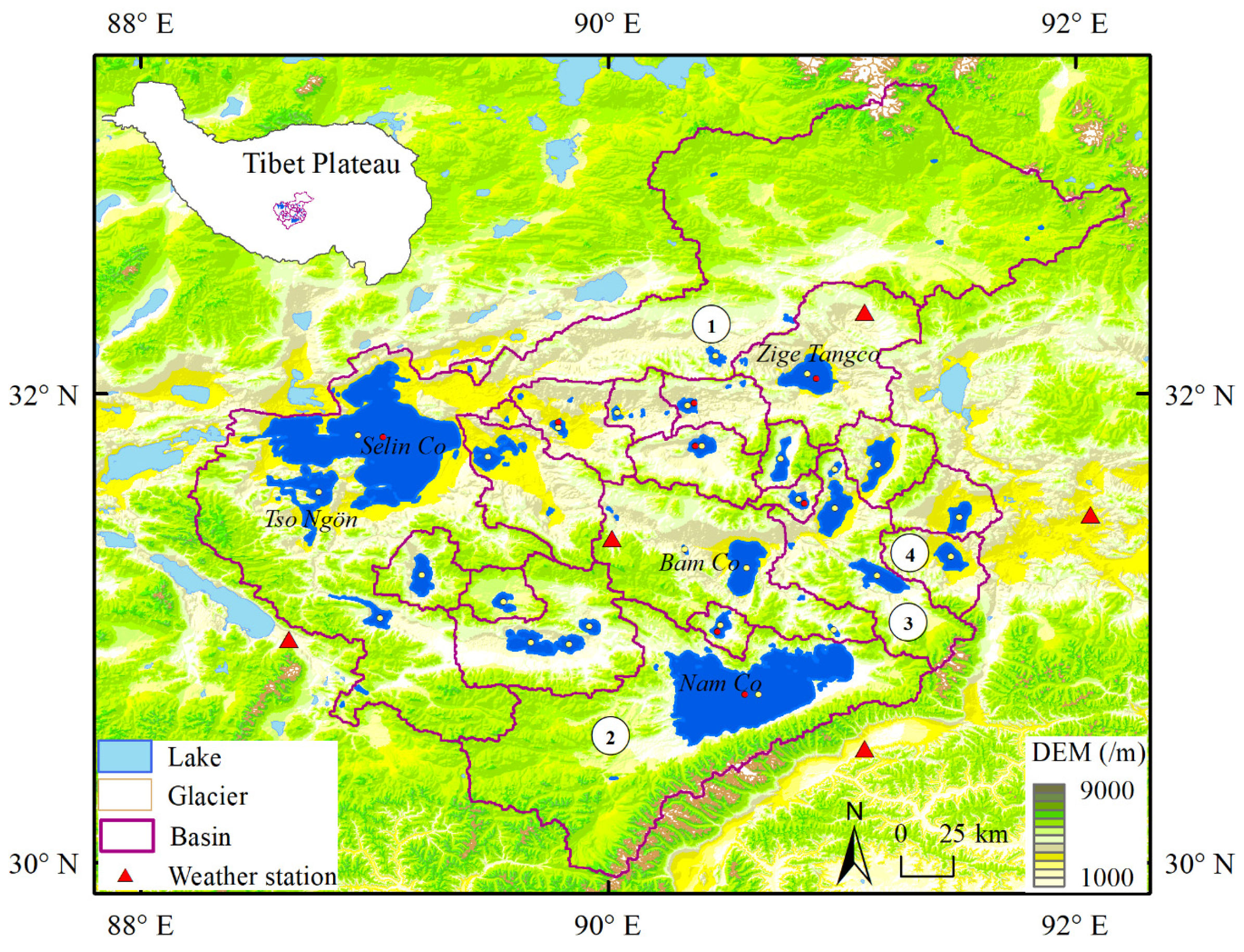 - Lei, Y.; Yang, K.; Wang, B.; Sheng, Y.; Bird, B.W.; Zhang, G.; Tian, L. Response of inland lake dynamics over the Tibetan Plateau to climate change. Clim. Chang. 2014, 125, 281–290. [Google Scholar] [CrossRef]