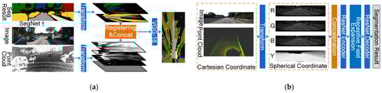 - Lee, J.-S.; Park, T.-H. Fast road detection by cnn-based camera–lidar fusion and spherical coordinate transformation. IEEE Trans. Intell. Transp. Syst. 2021, 22, 5802–5810. [Google Scholar] [CrossRef]