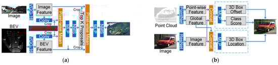 - Liang, M.; Yang, B.; Chen, Y.; Hu, R.; Urtasun, R. Multi-task multi-sensor fusion for 3D object detection. In Proceedings of the 2019 IEEE/CVF Conference on Computer Vision and Pattern Recognition (CVPR), Long Beach, CA, USA, 16–20 June 2019; pp. 7337–7345. [Google Scholar]