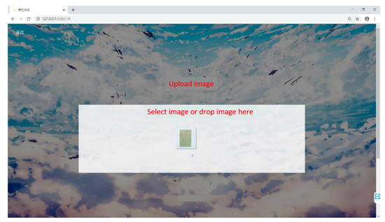 We created a prototype to verify the availability of our system; Figure 6 shows the interface on which users can upload images for recognition using the drag-and-drop function. If either the length or width fails to meet the requirement of being a multiple of 256, adjacent areas are added individually to prevent future predictions that could affect the result. The predicted results after the segmentation and representation of the returned results are presented at the front end after recognition at the back end, providing quick feedback about tree species (Figure 7).