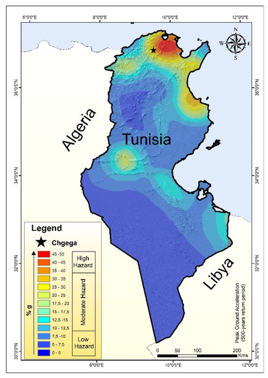Seismic hazard of Tunisia according to Soumaya et al. [39].
