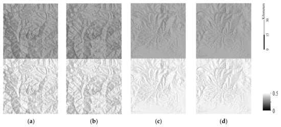 - Wu, Q.; Jin, Y.; Fan, H. Evaluating and comparing performances of topographic correction methods based on multi-source DEMs and Landsat-8 OLI data. Int. J. Remote Sens. 2016, 37, 4712–4730. [Google Scholar] [CrossRef]