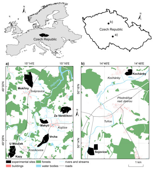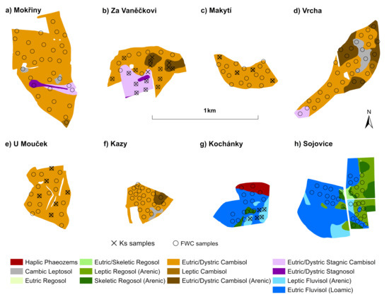 - Němeček, J.; Muhlhanselová, M.; Macků, J.; Vokoun, J.; Vavříček, D.; Novák, P. The Czech Taxonomic Soil Classification System, 2nd ed.; Czech University of Life Science Prague: Prague, Czech Republic, 2011. [Google Scholar]