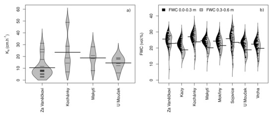 - Usowicz, B.; Lipiec, J. Spatial variability of saturated hydraulic conductivity and its links with other soil properties at the regional scale. Sci. Rep. 2021, 11, 8293. [Google Scholar] [CrossRef]