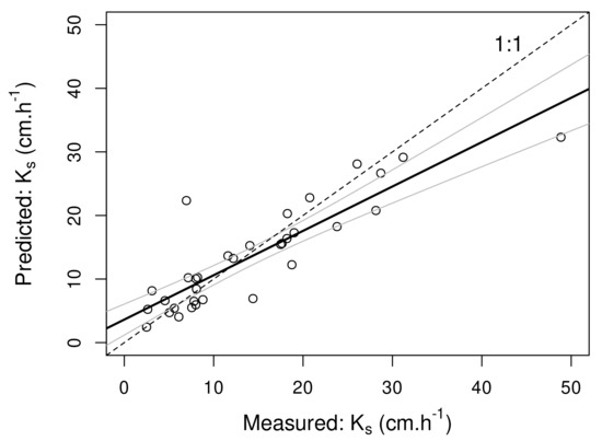 - Abdelbaki, A.M.; Youssef, M.A.; Naguib, E.M.F.; Kiwan, M.E.; El-giddawy, E.I. Evaluation of pedotransfer functions for predicting saturated hydraulic conductivity for U.S. soils. In Proceedings of the 2009 Reno, Nevada Conference, Reno, NV, USA, 21–24 June 2009; American Society of Agricultural and Biological Engineers: St. Joseph Charter Township, MI, USA, 2009. [Google Scholar] [CrossRef]