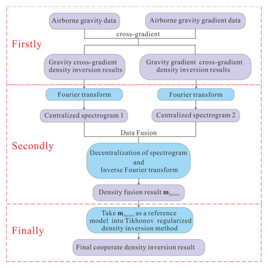 In order to improve the resolution to deep sources, we present a high-resolution cooperate density-integrated inversion method of integrated airborne gravity and its gradient data, and the specific computation processes are shown in Figure 1.
